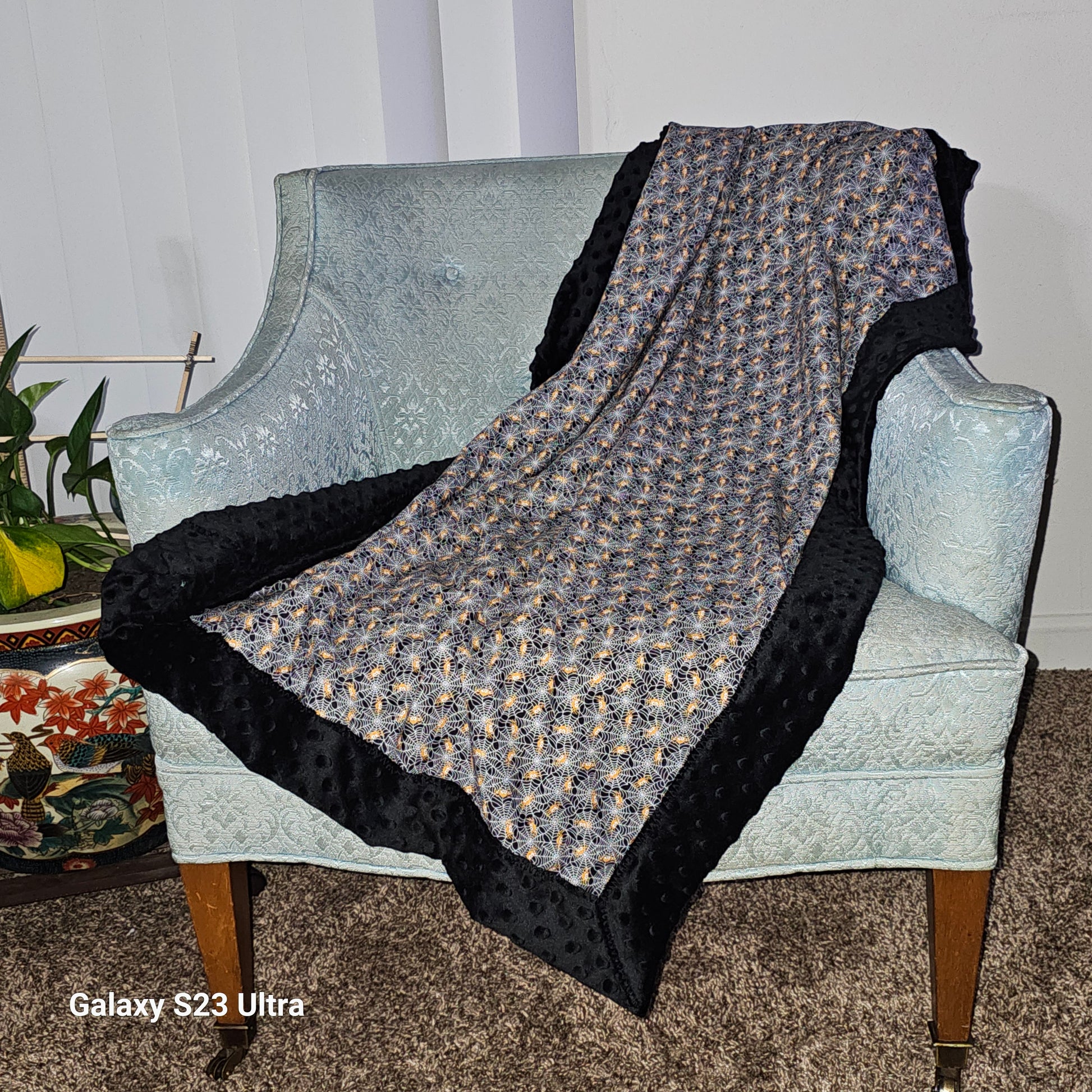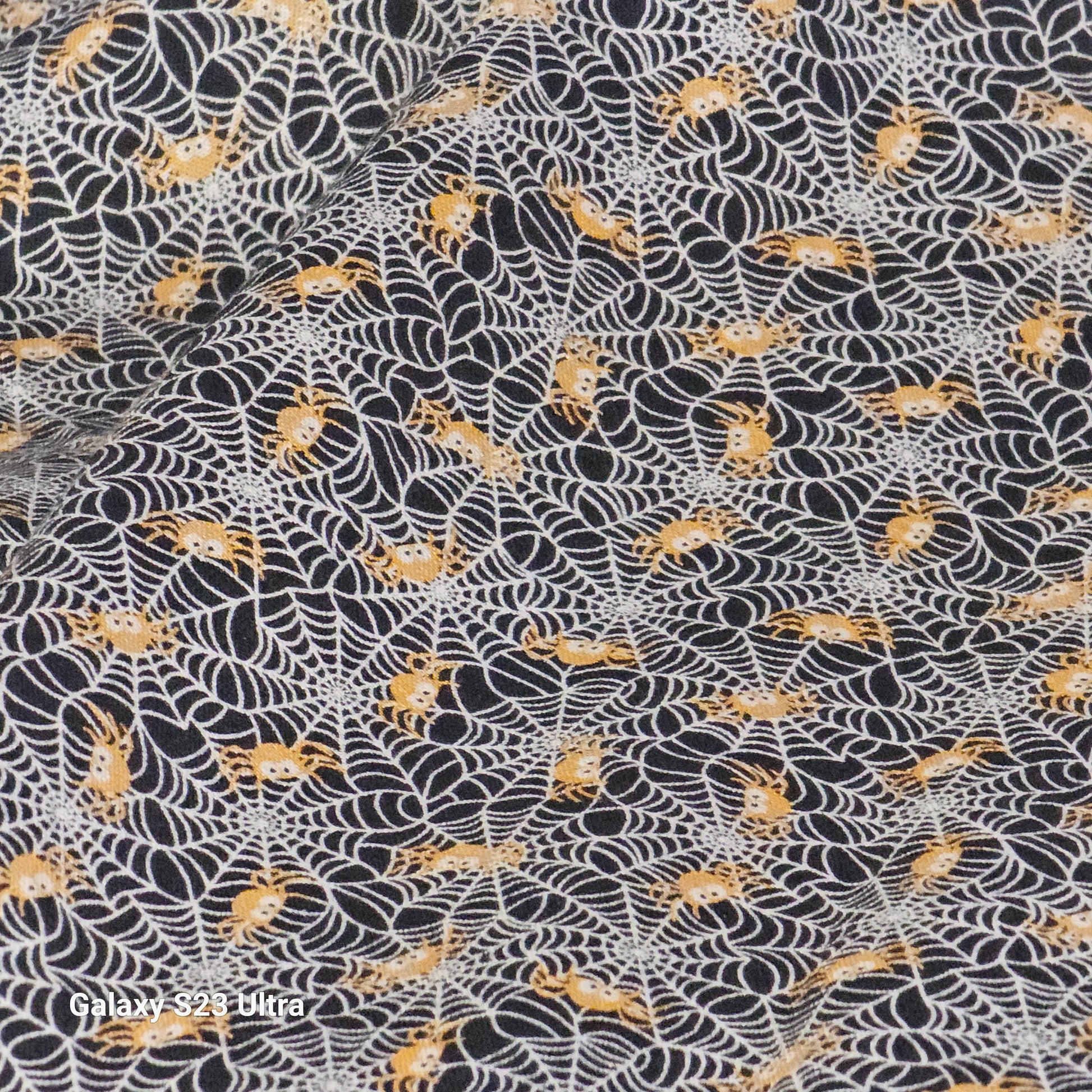 Orange spider on web print with black Minky dot